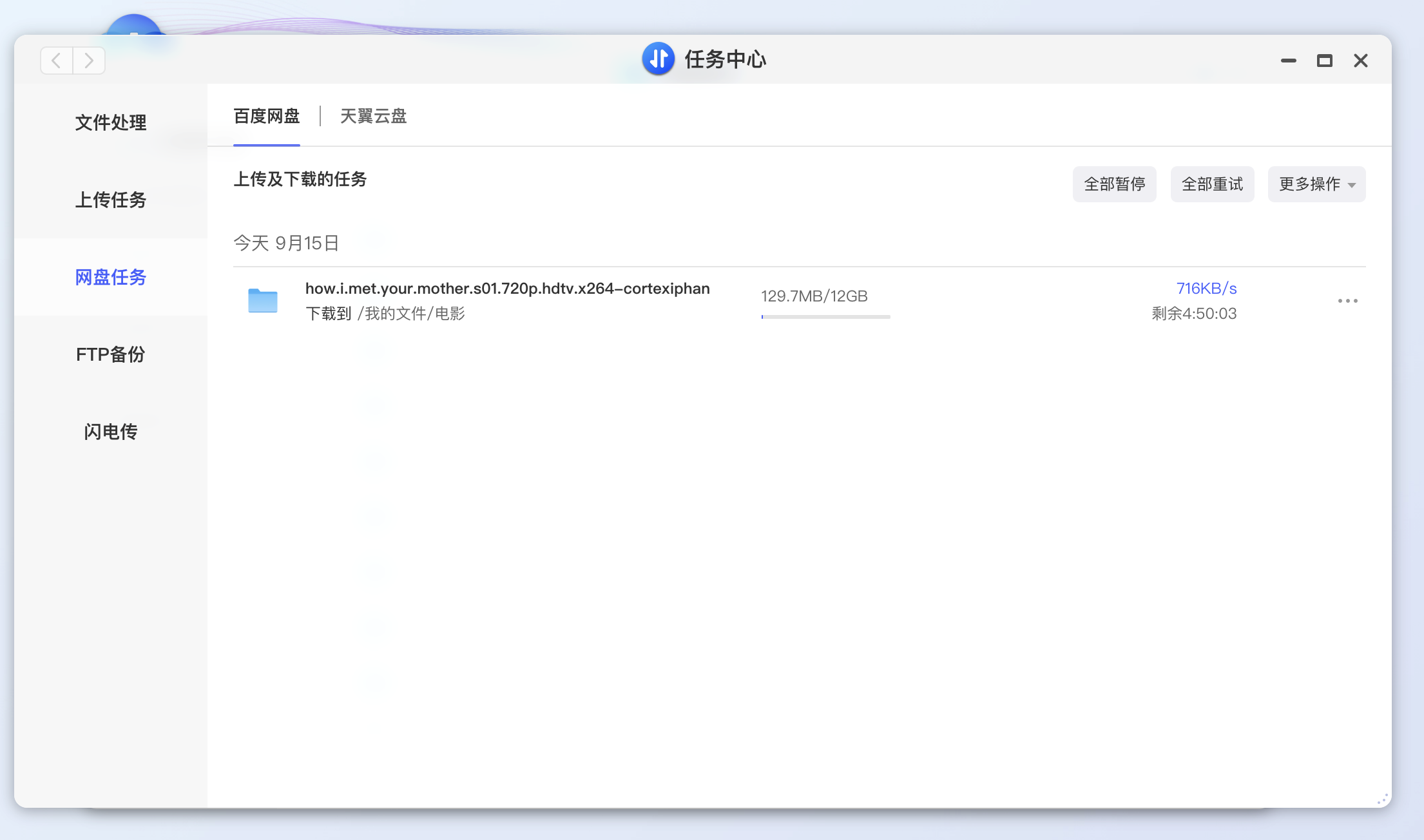 反正NAS是长期打开的,安心挂个下载,几天过去所有的百度网盘文件也就下载下来了。