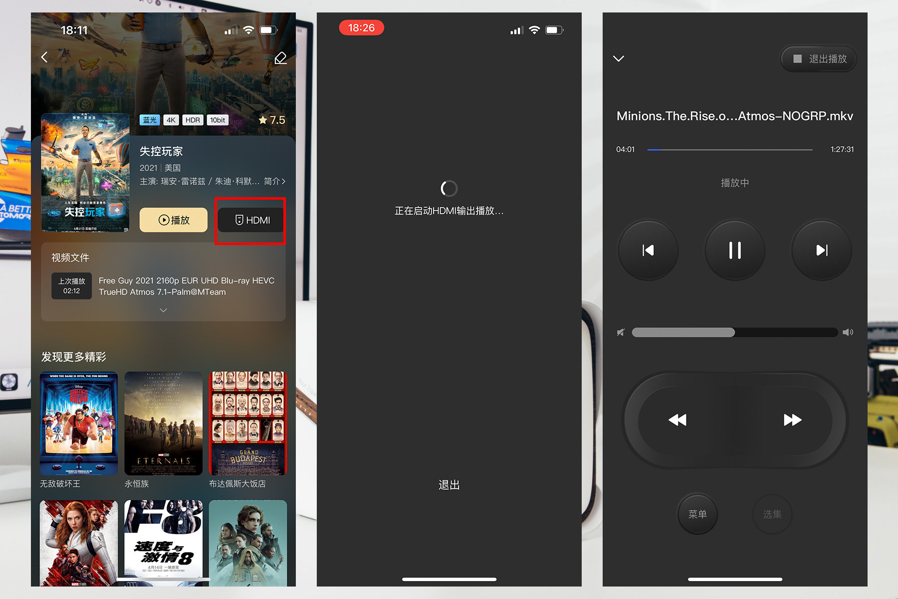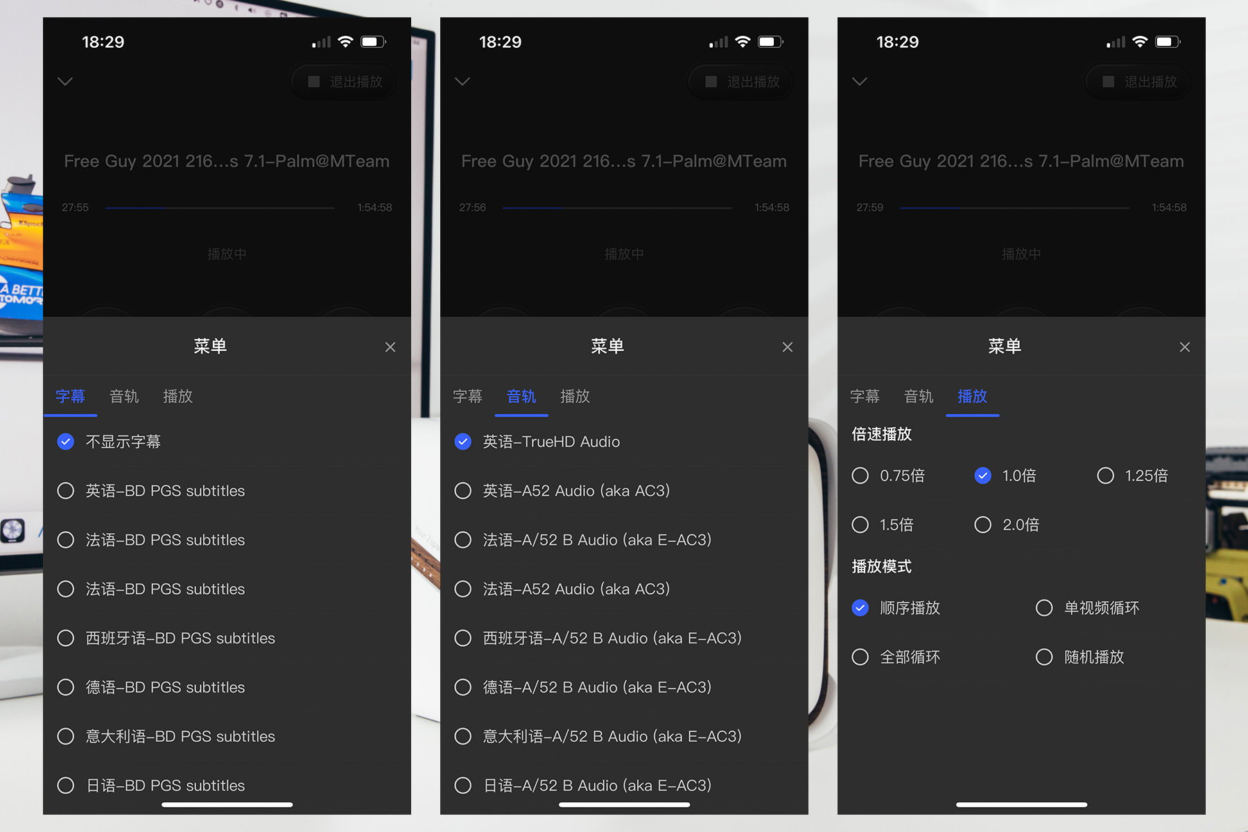 此刻手机APP就化身为一个遥控器,可以快进、设置字幕、音轨等。