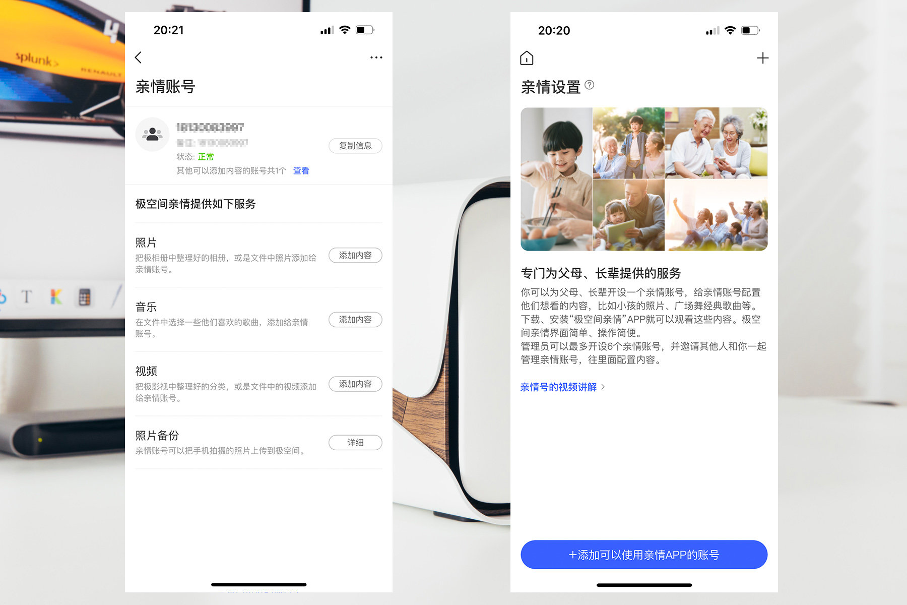 极空间可以开通六个亲情账号,简单来说,你可以为亲情账号单独分配照片、音乐、视频以及照片备份,使用单独简化版本极空间亲情APP来浏览照片、视频以及听音乐。