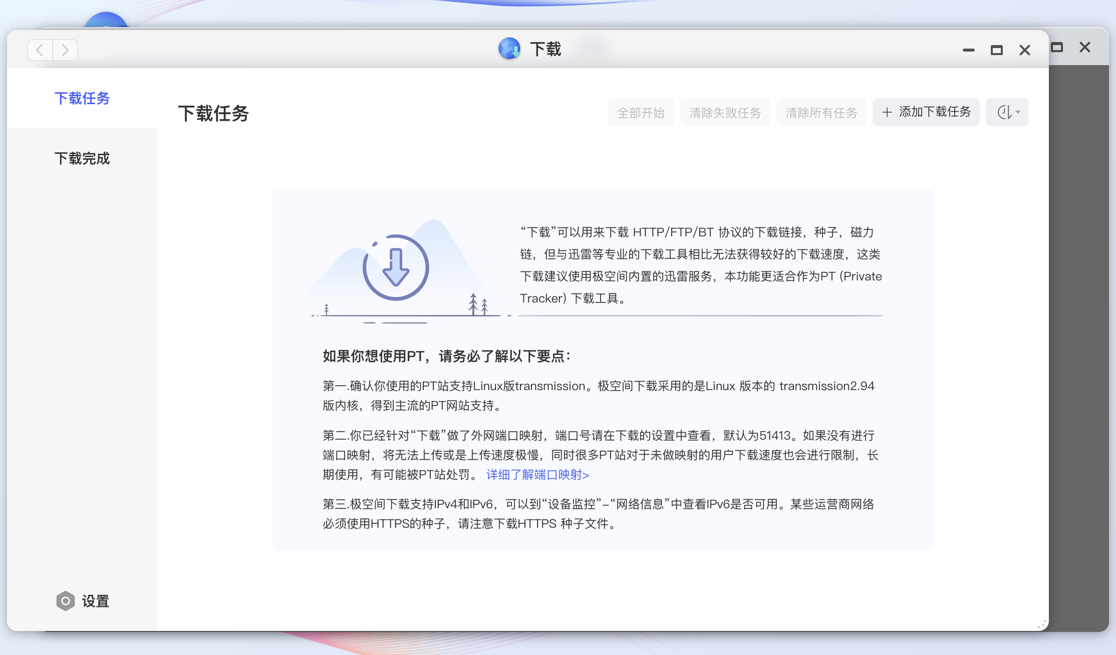 内置的下载软件支持PT、BT、HTTP、FTP、磁力,而且它的核心其实就是我目前用的TR,transmission 2.94,支持主流PT网站。