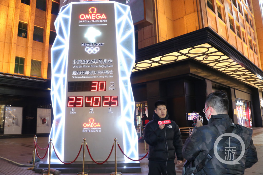 包靖在王府井大街报道2022北京冬奥会倒计时30天。