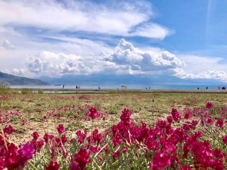 三次来赛里木湖每次的感受都不同,这次是春季来,虽然是山花烂漫,但面积453平方公里的湖面,东边进去阳光灿烂,山花浪漫。
