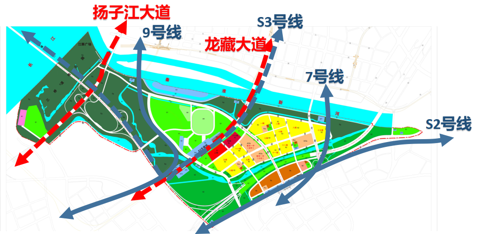 轨道交通方面,片区内规划又4条轨道交通,目前已建成S3号线天保站,在建7号线和规划S2号线、9号线在片区内设有3处站点。