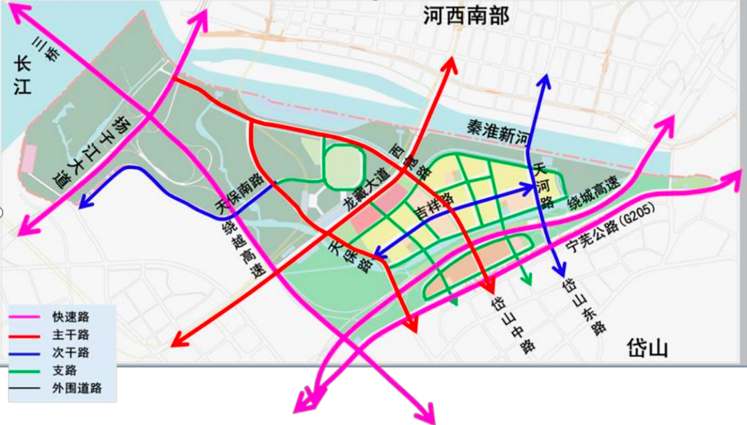 文竹路、吉祥路、西寇北路、岱山东路北延等4条道路确保2022年12月底具备通车条件,其中岱山东路北延跨秦淮新河大桥已于4月正式合龙,预计年内通车。