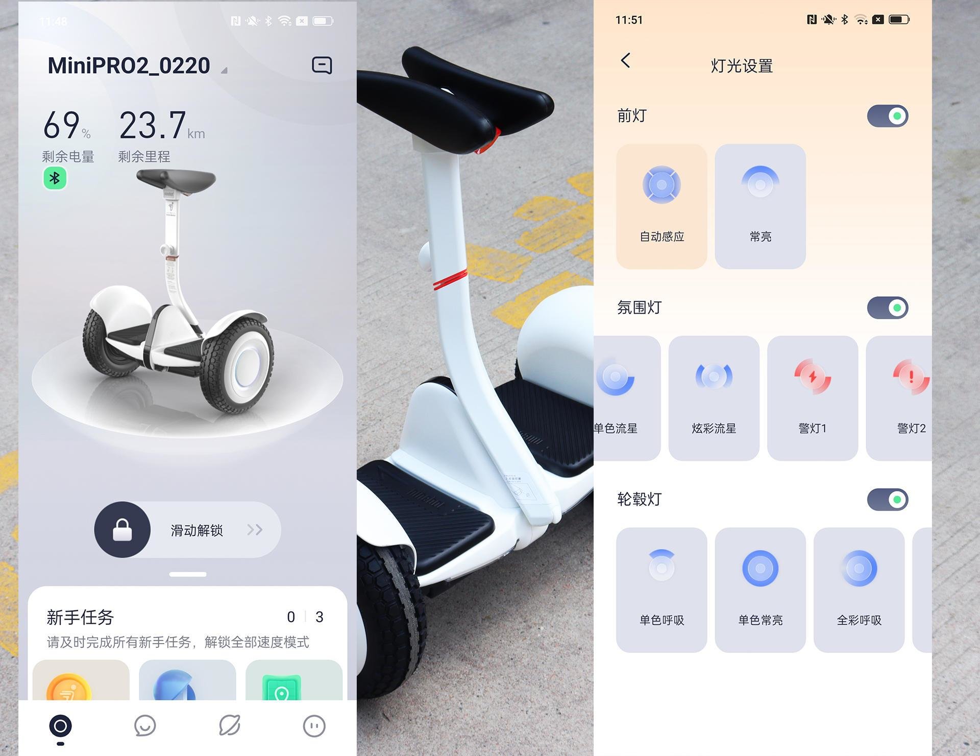 过了初学者教程,就可以解锁很多模式了,同时可以通过app控制平衡车移动,让平衡车秒变遥控车,还可以设置平衡车的灯效模式,同时也可以再社区中分享自己的骑行高能趣事。App里面的可玩性也是挺高的。