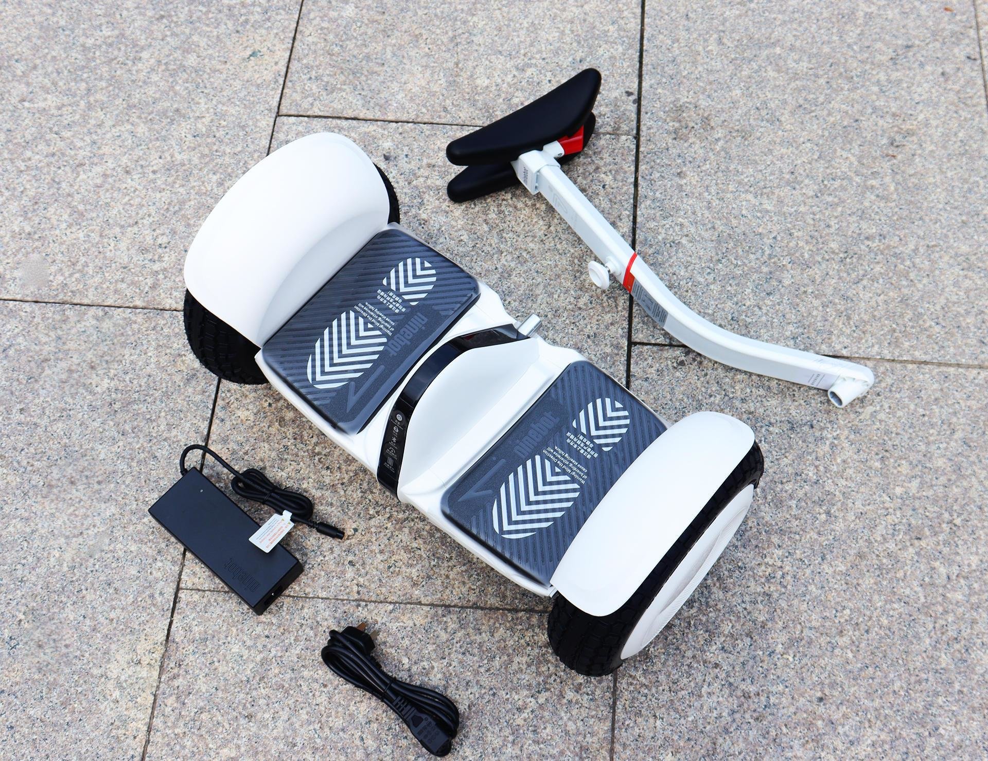 拆开包装:配件主要有充电器,以及可伸缩腿控杆,平衡车、以及安装螺丝工具,需要注意这里的腿控杆需要自己安装,不过安装很简单的。