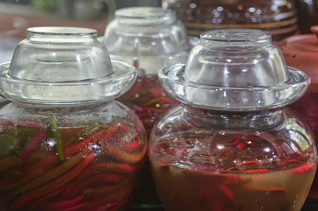 比服务员金戒子抢眼的是,酒坛子周围一圈泡的二荆条,色泽红亮,像是被困的野兽,看起来清脆爽口,感觉放出来不得了。