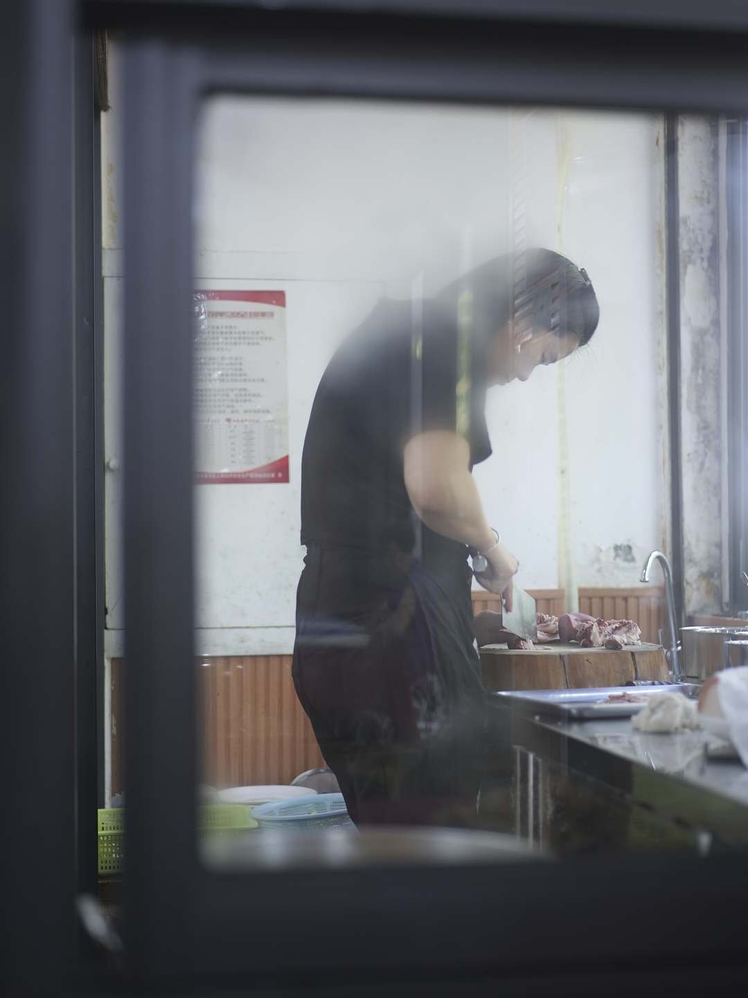 然而就在我们看得饶有兴致的时候,服务员横冲直撞端着两个盘子冲出来,堵在门口的一群人慌乱到无路可走,又退到门外。