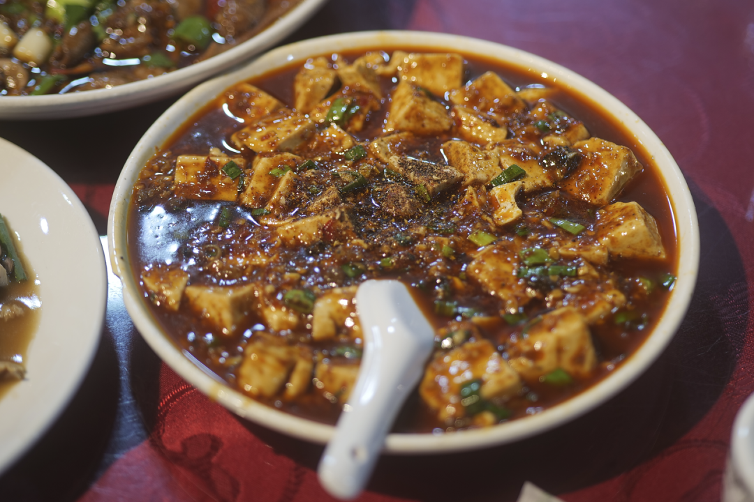 豆腐顺滑咸香,但烫口,用筷子一点一点划着吃,汤汁见缝插针裹住米饭,麻与辣棋逢对手,可以排进吃过的麻婆豆腐前三。