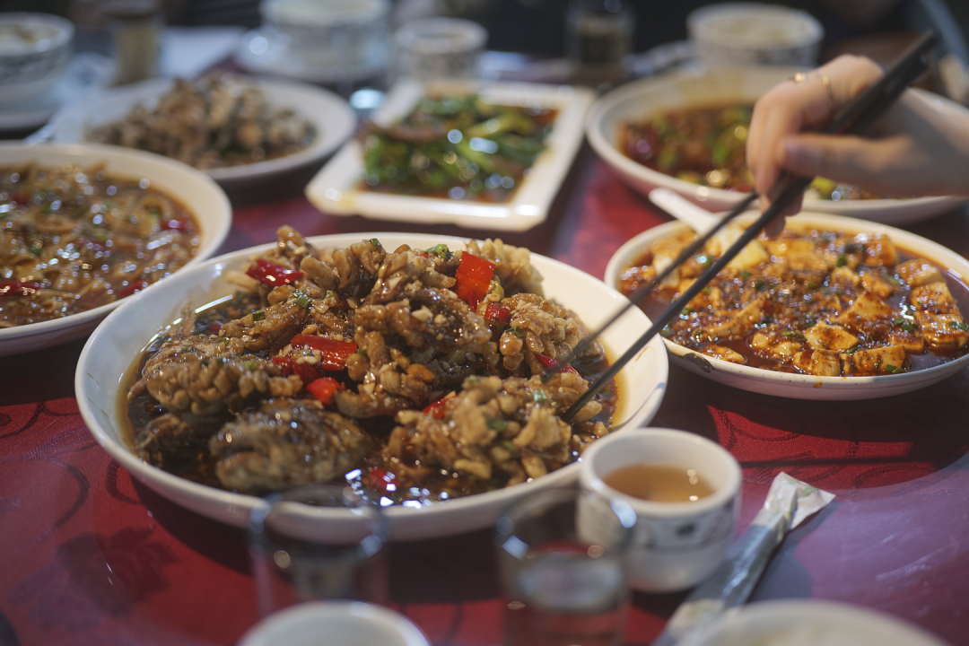 别个是吃到碗里看到锅里,我们是吃到桌上,盯到下一桌好久走。