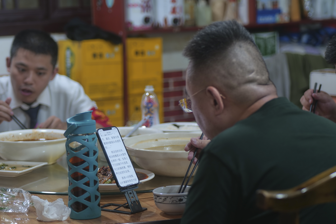 手机架在支架上,让脖子舒服,站起身挑一碗喜欢的菜到自己碗里,不闻不问桌上的八卦,只盯到酒杯里的刻度,准备续杯。