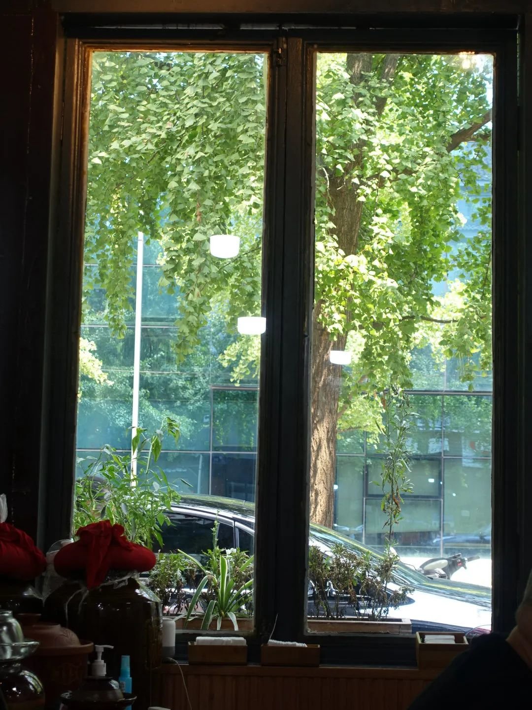 不大不小的窗户,把一棵银杏就框在里头,从里面往外面看,自然清新的感觉,等到银杏渐黄的时候,就可以推开窗了。