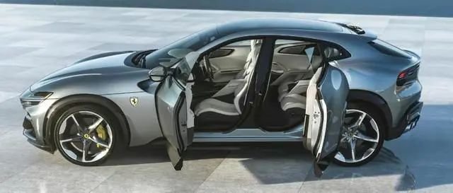 车身尺寸方面,新车长宽高分别为4973/2028/1589mm,轴距为3018mm,而在车身侧面,和兰博基尼Urus相比,这辆法拉利Purosangue侧面看上去确实不像是一辆真正的SUV,而是更像增加了黑色轮眉以及下包围套件的四门轿跑!新车采用了全新的四门四座设计,以及配备了隐藏式门把手的设计,对开门设计,其中前门开启角度为63度,后门开启角度为79度,这个和库里南的设计倒有几分相似之处!
