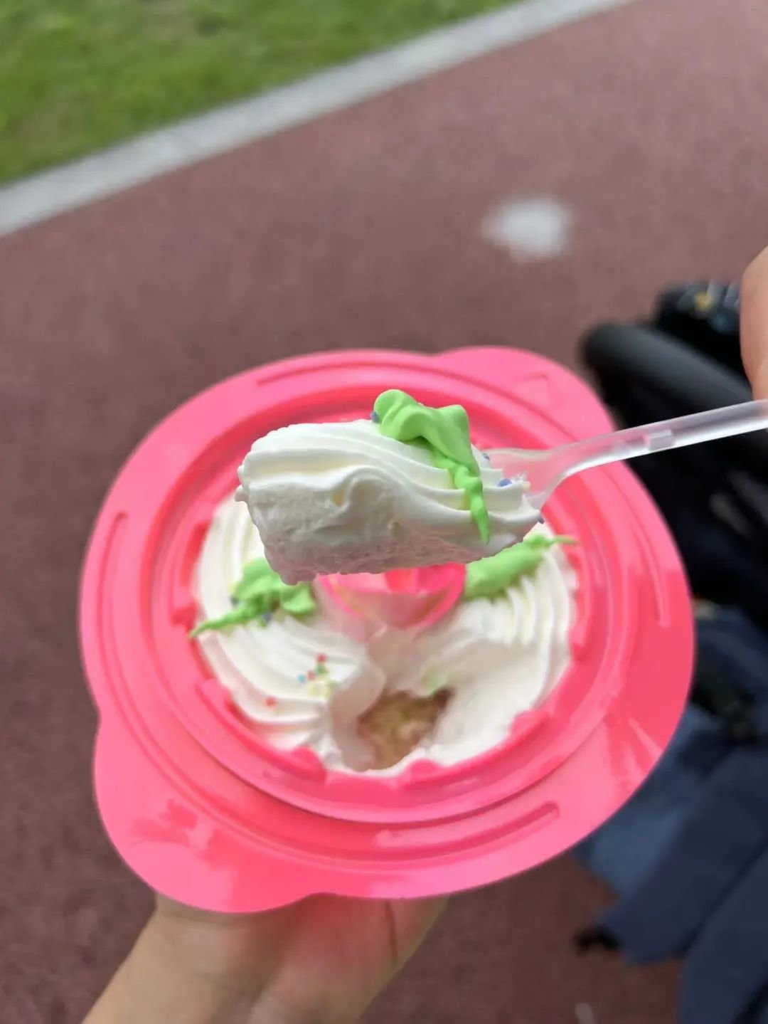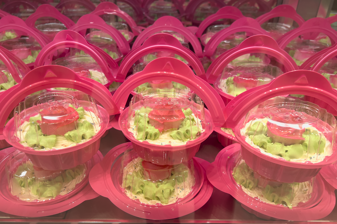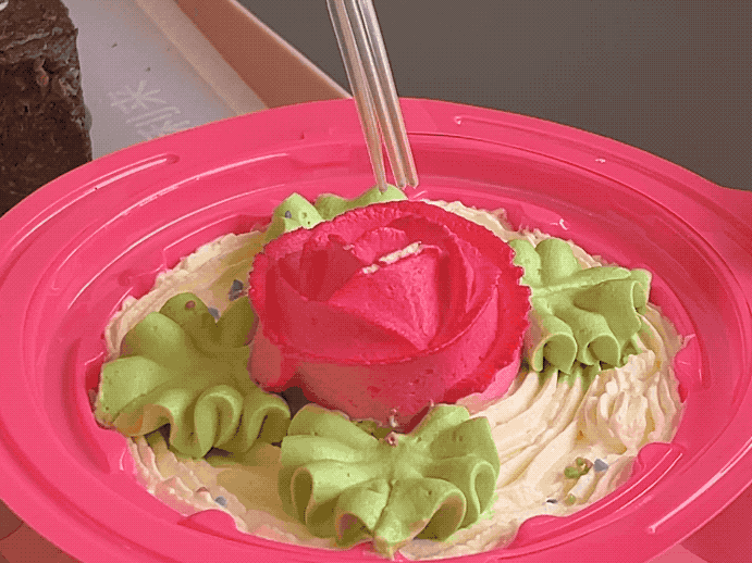 造型其实没有差异,但口味还是有区分,最小的花篮就是草莓奶油,有一点偏甜,但冻过之后,奶油有一点冰淇淋感。
