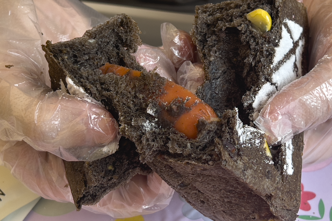 我们也不是毫无收获,扭头出门之后,我们又扭头回来买了一个死亡圣器面包,“吃一个是一个”,一个黑色三角包。