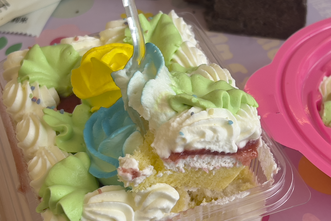 奶油蛋糕便当,分量还是比较足,我们三个人一直挖一直挖。