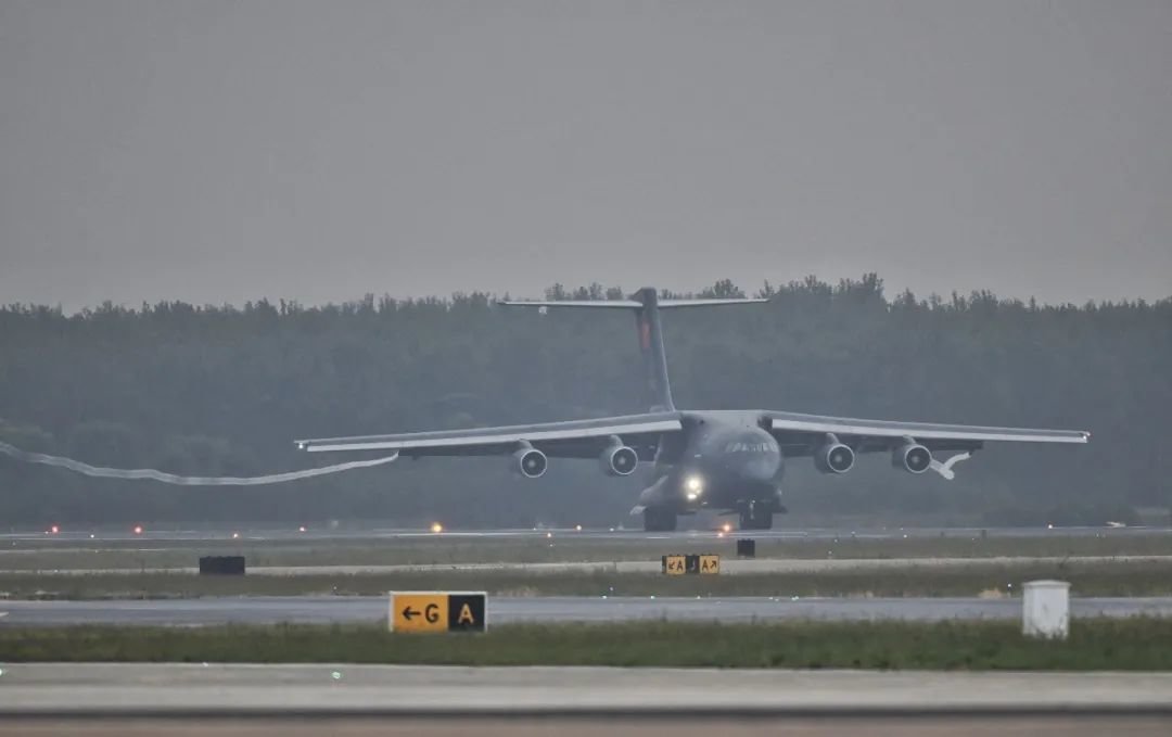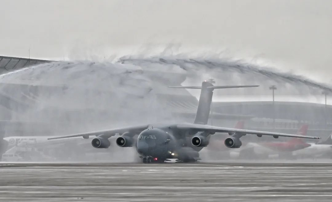 11时许,运送烈士棺椁的运-20专机降落在沈阳桃仙国际机场。运-20落地后缓缓通过水门,两架歼-20低空通场致敬志愿军英雄。