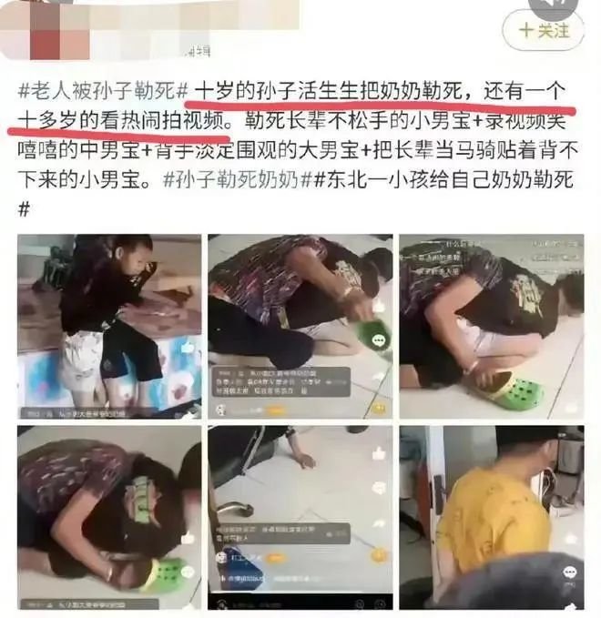 但孙子置之不理,又勒了将近一分钟,直到地上的奶奶彻底没了动静。
