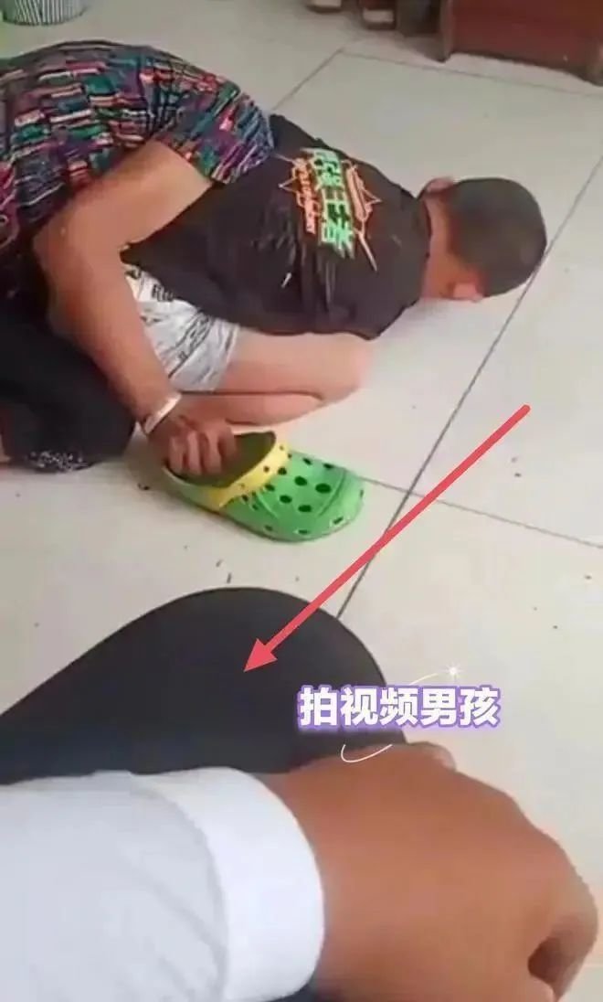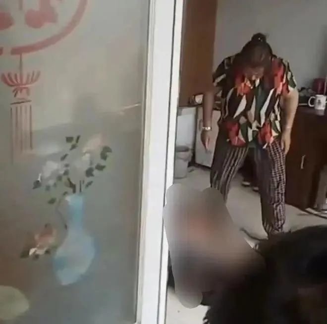 她一进门就抄起藤条一样的东西开始教训男孩。
