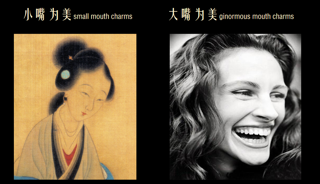 · 中国以樱桃小口为美,西方以奔放大嘴为美