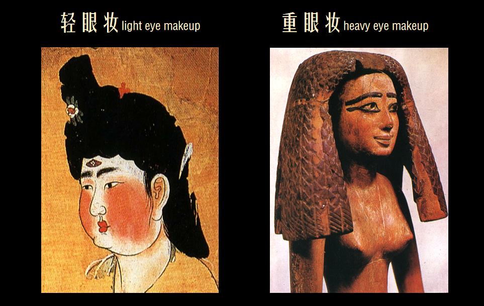 · 中国喜平面化妆饰,西方重立体化塑造
