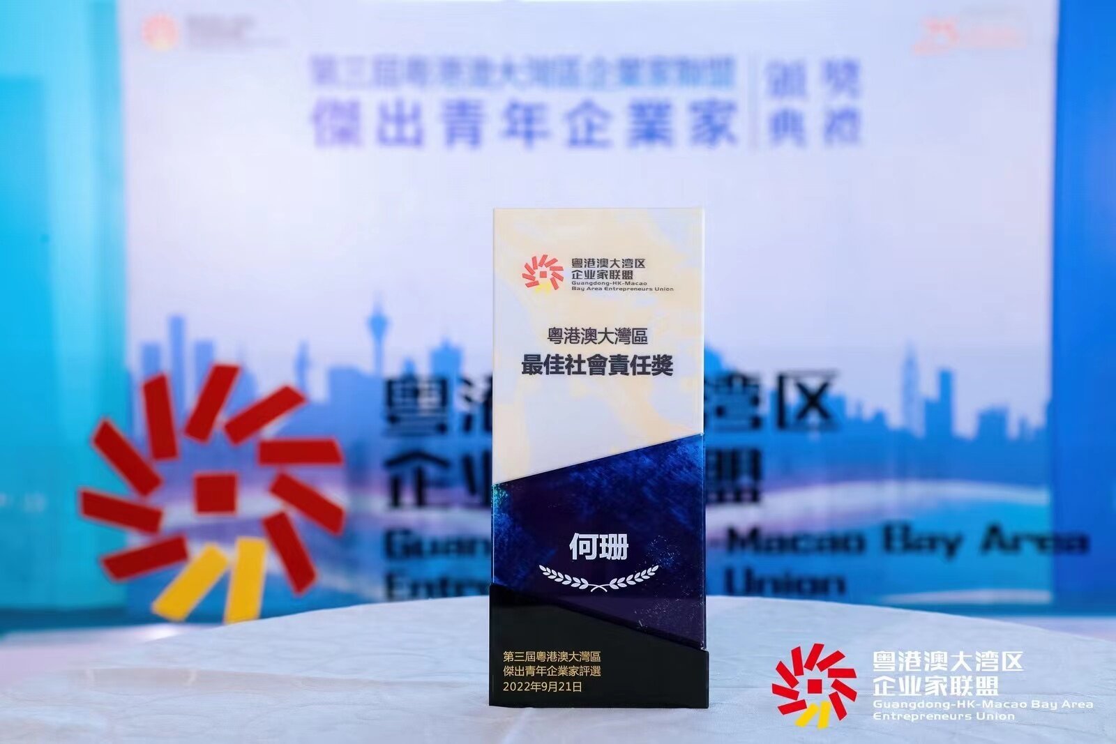 9月21日,由粤港澳大湾区企业家联盟主办的第三届粤港澳大湾区杰出青年企业家颁奖典礼(以下简称“湾区杰青奖”)在香港、深圳、澳门同步连线。依托平台资源和自身实力担起社会责任,助推经济、社会与文化的协调发展,洋葱集团创业合伙人何珊荣膺大湾区杰出青年企业家“最佳社会责任奖”。