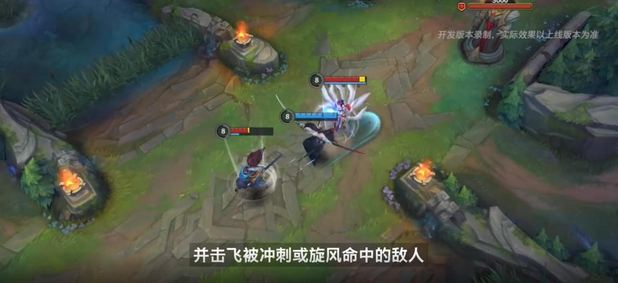 第二个是大招必中。永恩的大招前摇很长,非常难命中敌人。但是,如果先用一技能的第三段击飞敌人,再接上大招,大招就是必中的,打出和亚索大招类似的连续控制效果。