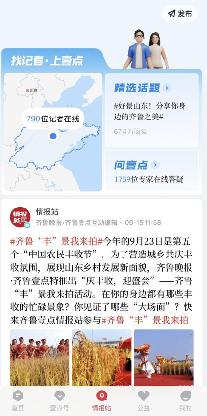 齐鲁壹点10.0版本在功能上重新构造了壹点号、情报站、壹点公益等核心板块的业务模式和运营思路。