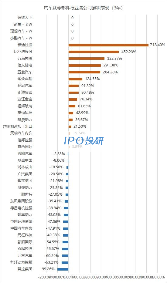 累计表现涨幅最大的是雅迪控股(01585.HK),涨幅为718.40%;跌幅最大的是首控集团(01269.HK),跌幅为-99.26%。