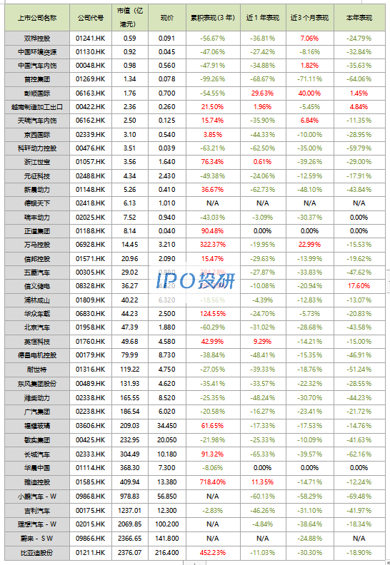 截止至09月26日,共有38家汽车及零部件公司在香港挂牌上市。