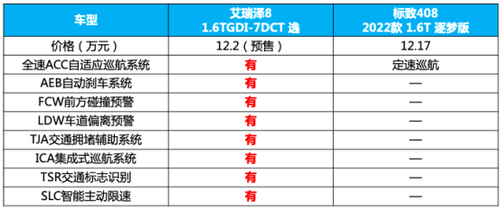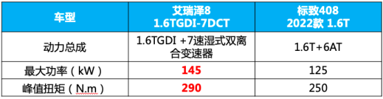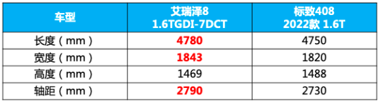 从上面表格中我们可以看到,在价格相差无几的情况下,艾瑞泽8-1.6TGDI-7DCT 逸比标致408 2022款 1.6T 逐梦版更具诚意,更容易被科技控们追捧。