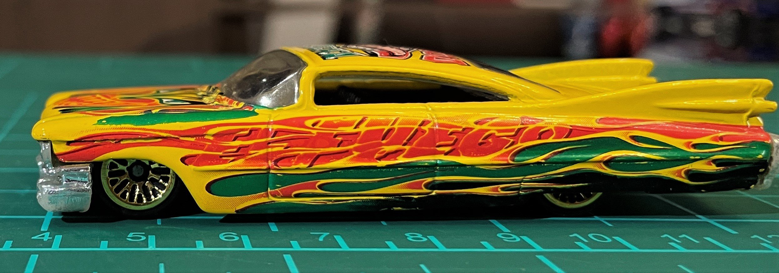 本期风火轮小车就是一部2003年发售的” Radical Wrestlers”(激进的摔跤手)系列,59’Cadillac(凯迪拉克)“mucha lucha”授权款。