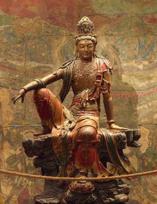 如中国寺庙画廊陈列着一尊金代木胎彩绘菩萨像(下图中间),高达305cm,为中国存世高古木造像中体量最巨,雕工最精的稀世之作。