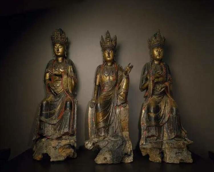 明代 木胎漆金菩萨组像