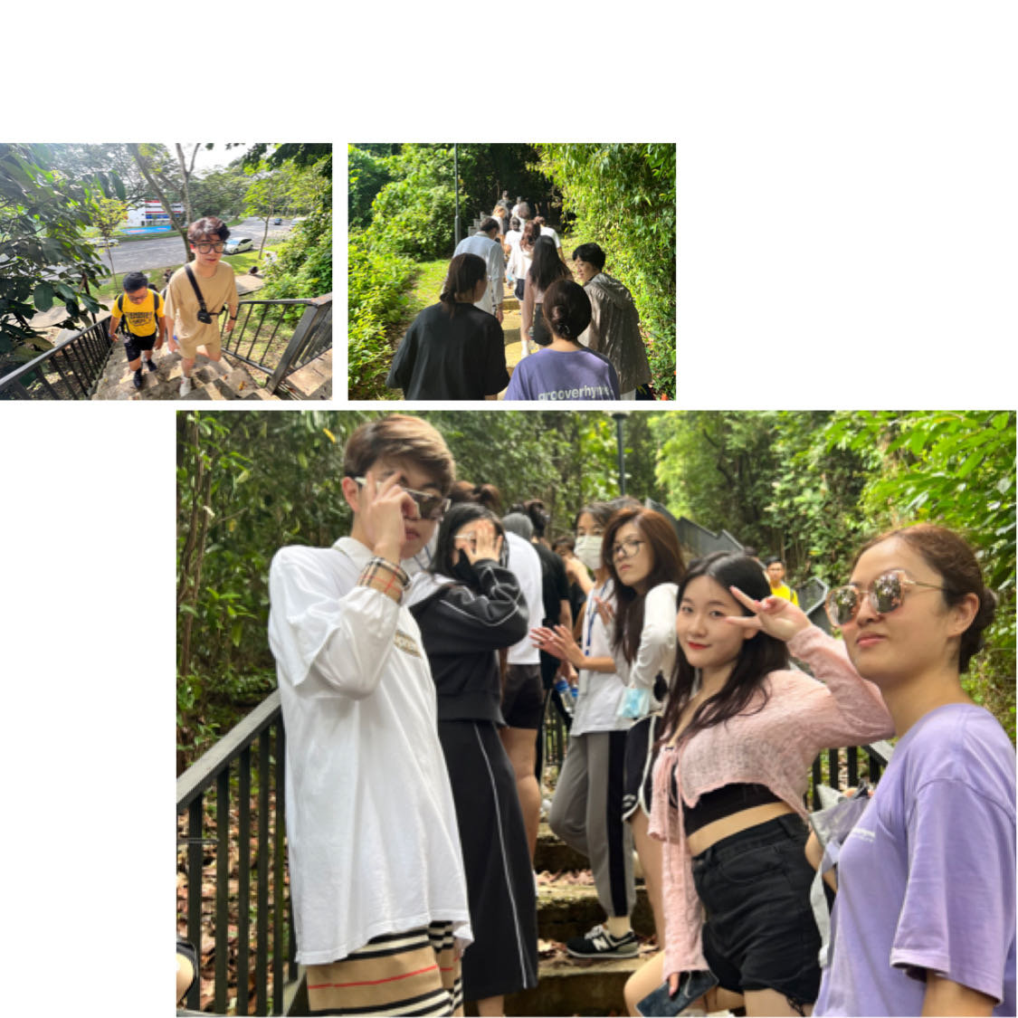 SCI的拓展训练老师和班主任老师们还随同新生们一起爬学校旁边的著名景点花柏山,俯瞰圣淘沙岛。