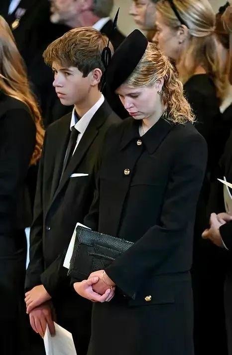 詹姆斯的姐姐是路易丝女爵,也就是路易丝·温莎,在这场葬礼上,爱德华和苏菲的一双儿女,表现都非常出彩,尤其是14岁的詹姆斯,虽然年纪小,但从拍到的照片中看,一举一动已经很成熟了,詹姆斯低头时的照片和威廉王子15岁时非常像。
