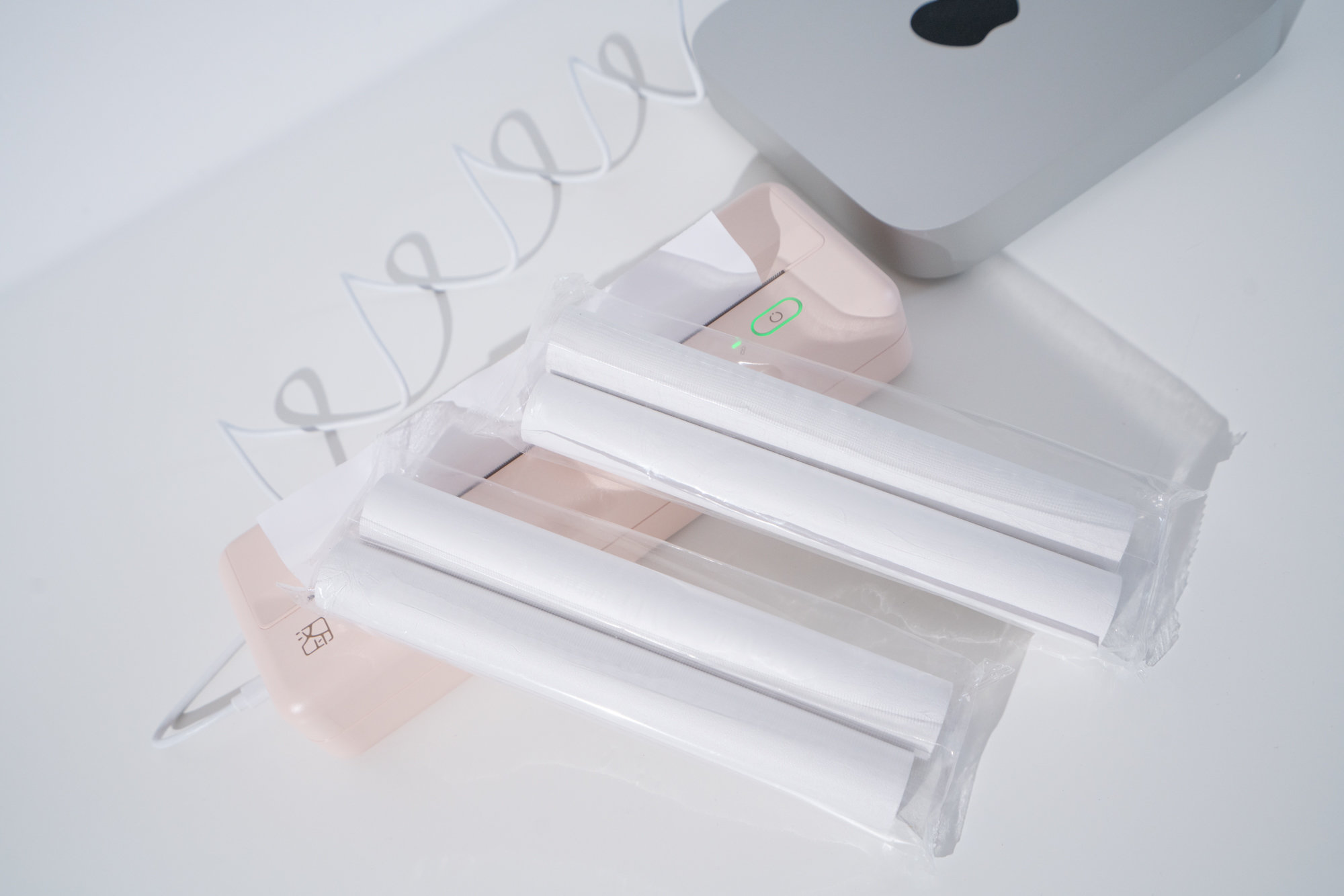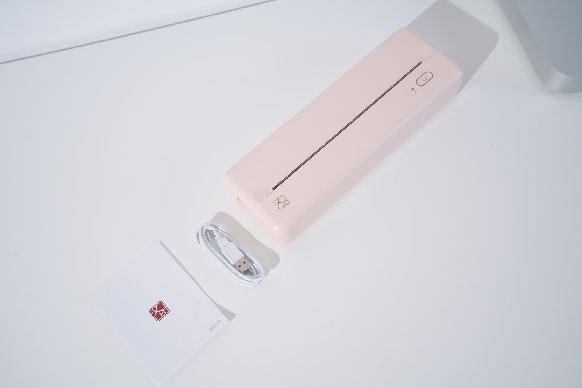因为是购买的官方套餐,所以这套打印机里面配置了MT810打印机一台、说明书一个、typc-c数据线一根、速干卷纸5卷。