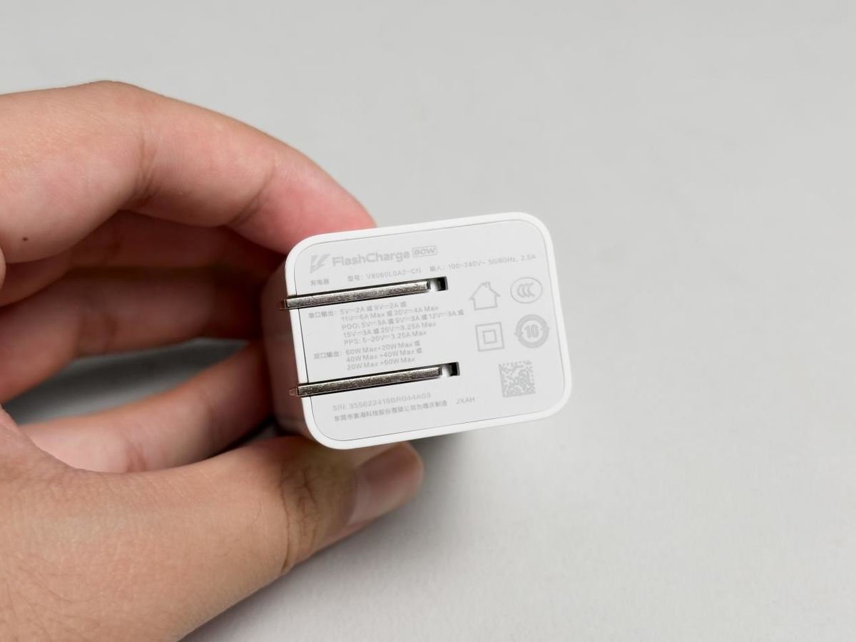 一代折叠屏上的双 C 口 80W 氮化镓充电头在这一代依然得到了保留,这个还是值得大力称赞的,毕竟半年过后,还是没有其他厂商跟进这个设计。在外出差的时候只需要带这一个充电头就足够了,可以同时给手机和笔记本电脑供电,还有可折叠的插脚,体积小巧,携带起来更加方便,还是建议其他厂商可以跟进一下。