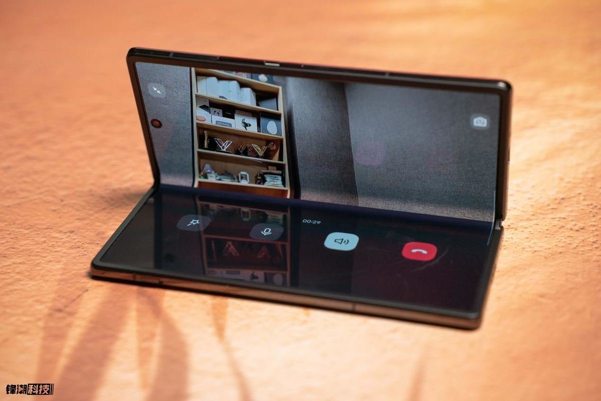 这个铰链的质感出色,转动的手感非常不错,同时也让 vivo X Fold+ 能够实现多角度无级悬停,这也给手机带来了悬停操作的多种有趣体验。