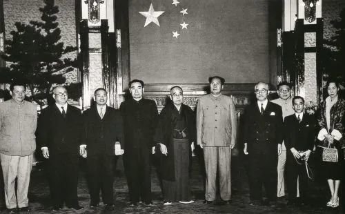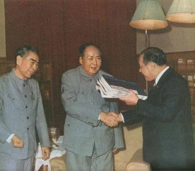 1955年10月15日,毛泽东主席、周恩来总理会见日本国会议员代表团全体成员。