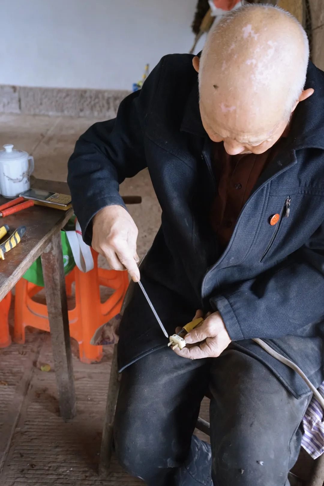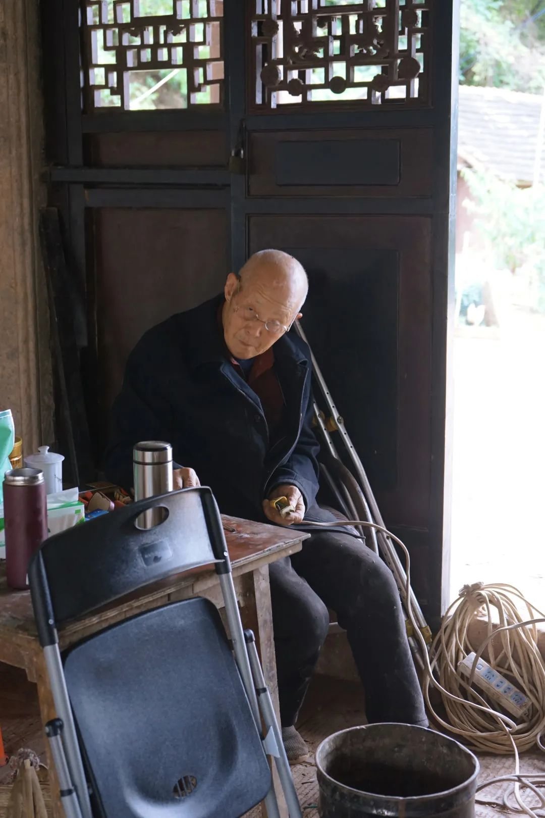 白日,看护古寺石碑时,肖大爷会坐在农家老旧木质桌椅旁,干着一些简单的活计。打理古寺,肖大爷像打理自家院子一样。