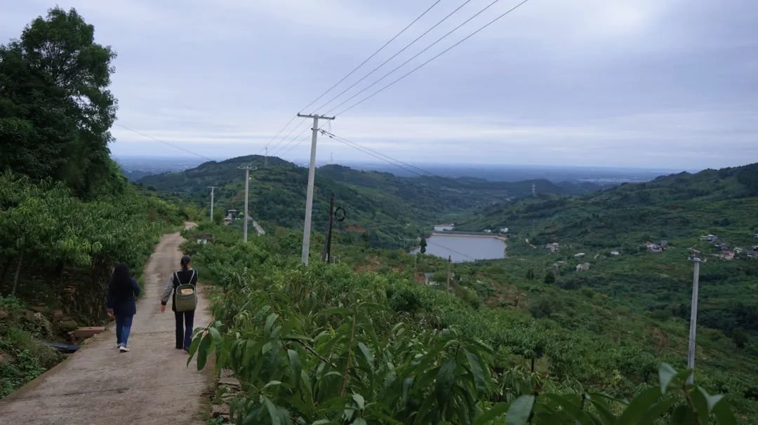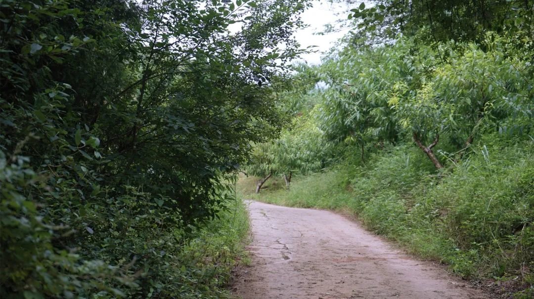 沿途近两公里,农家小院不足10户,水池数个,零星分散。窄路仅容得下一辆小车单向通行,两旁遍是桃子、石榴和柚子等果树林木。