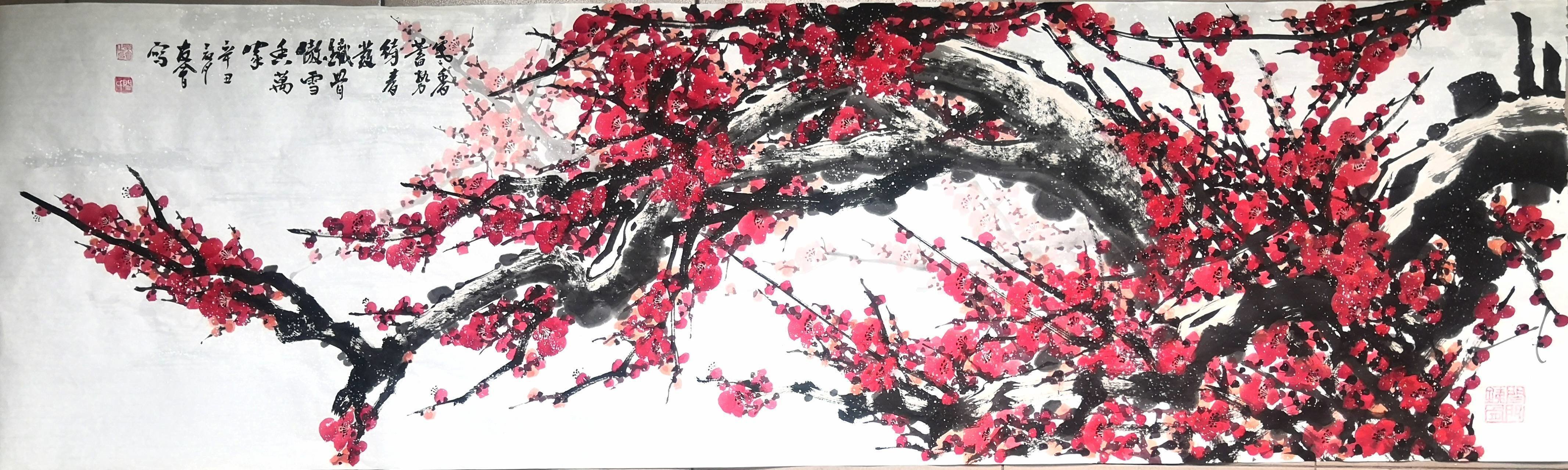 自幼酷爱书画艺术,尤爱画梅。所画梅花繁花累累,缤纷烂漫,花朵丰腴饱满,明亮夺目,满树炽 烈如火,通幅激情四射。画中梅花枝干虬曲,老干疏枝,老辣浑厚,而又不失典雅俏丽。疏影横斜之神态勾勒得淋漓尽致,可谓独树一帜。其鸿篇巨制的树梅,或尺幅小品的折枝、或春梅、或雪梅、月下之梅、冰崖之梅独辟蹊径。师法自然,着浓艳于浑厚,涵茂密于清逸,逐渐形成了自己独特的画梅艺术风格。