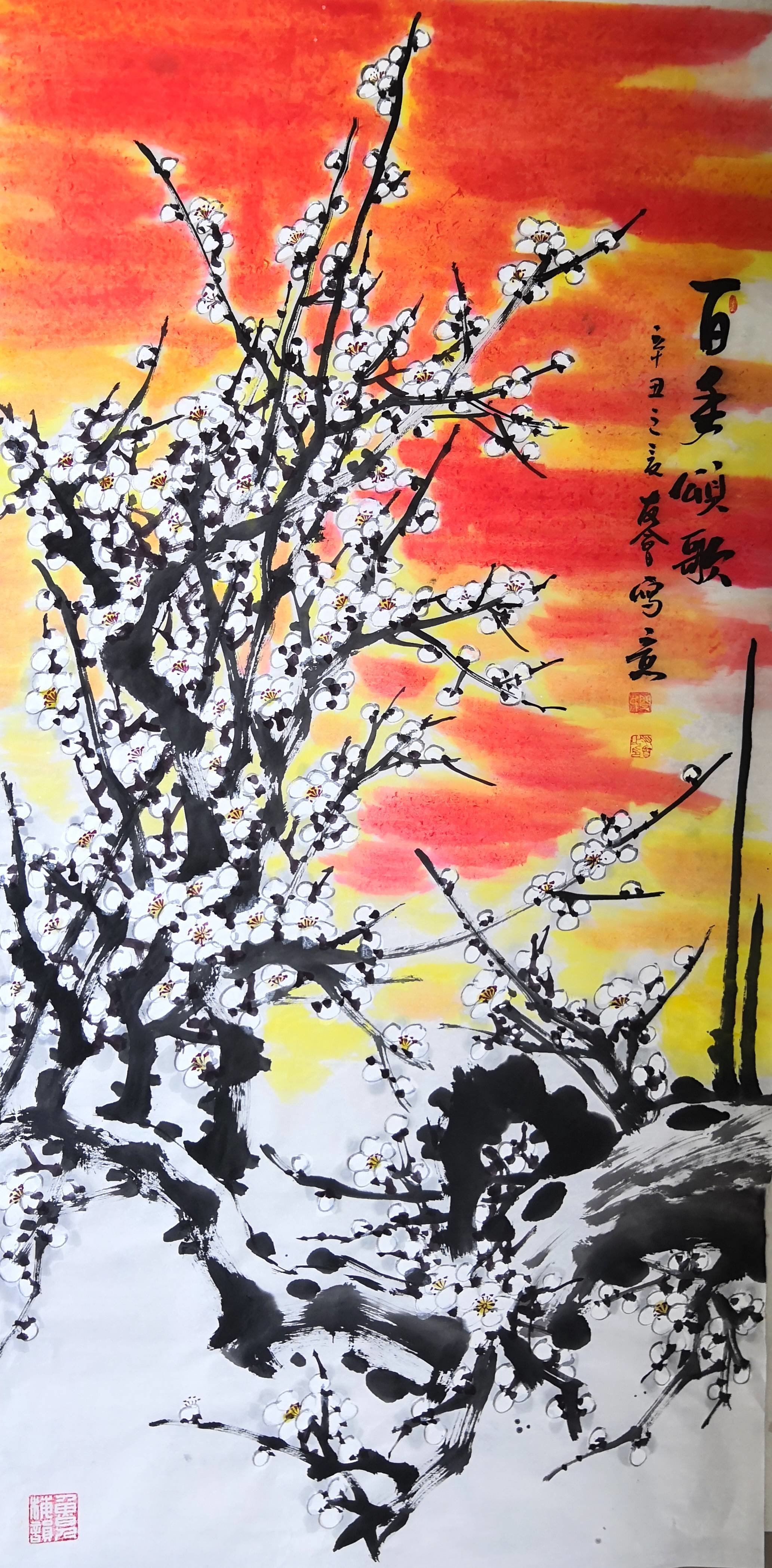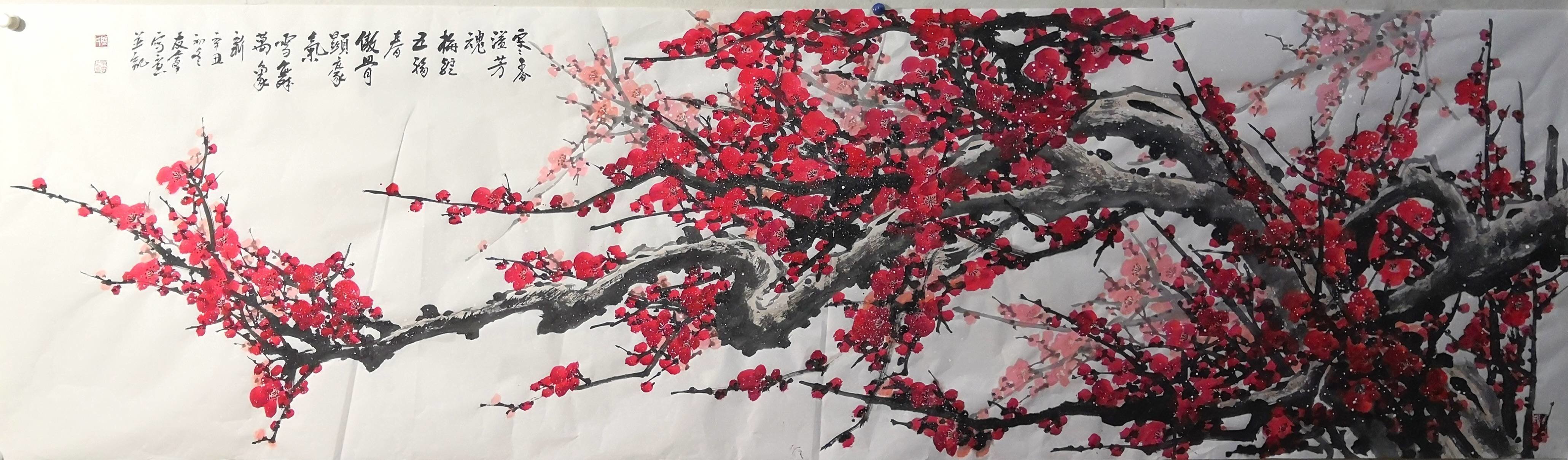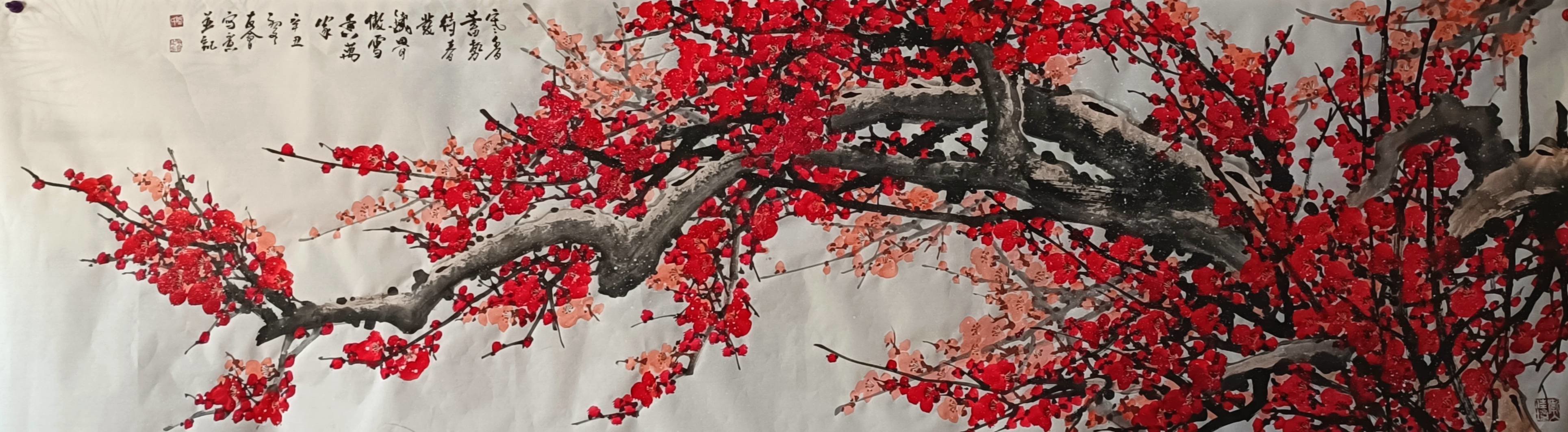 2021年7月,梅花作品《铁骨铮铮显国魂》参加“红色传承映初心——丹青