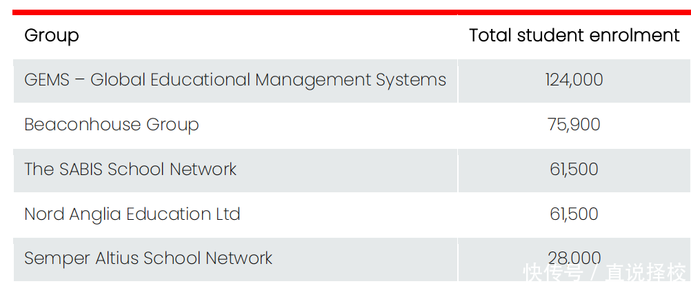 从这些集团化办学品牌拥有或管理的国际化学校数量来看,全球国际化学校市场中排名前五位的学校集团分别是: