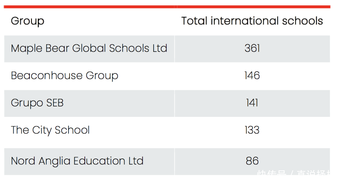 从学校数量来看,排名前五的国际教育集团则为: