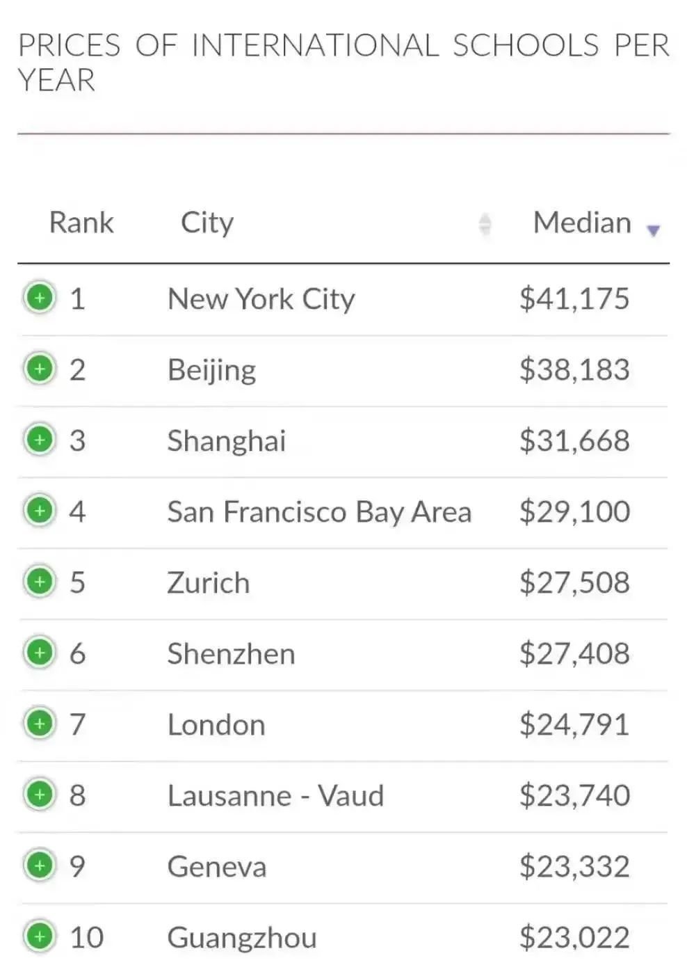 国际教育平台International Schools Database 近期发布的《2021全球国际教育费用排行榜》显示,全球最贵的10个城市学费榜单中,北上广深全上榜,其中北京和上海的收费水平仅次于纽约市!