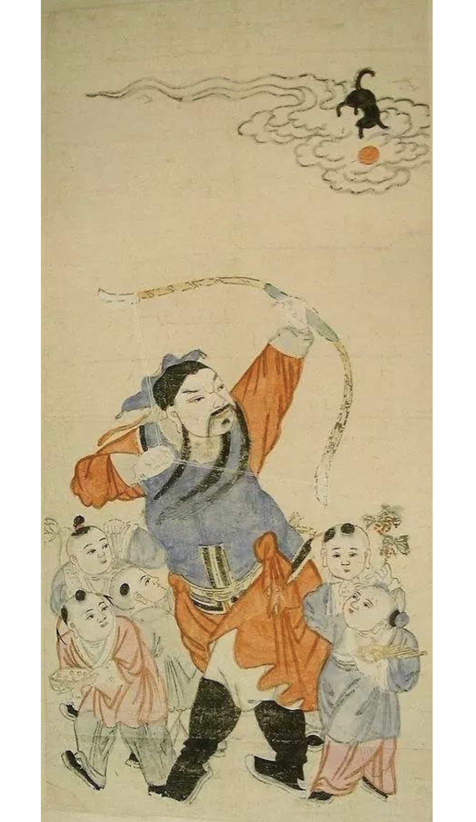 第五种形态是狗的样子,也就是天狗吃月亮。明代有记载说:“元至正六年,司天台奏称:天狗星坠地,始于楚,终于吴,遍及于齐、赵诸地,但不及于两广,当血食人间五千日也。时云南玉案山忽生小赤犬无数,群吠于野。占者曰:此天狗坠地,有大军覆境。”(明·郎瑛《七修类稿》卷四)清代也有类似的记载。