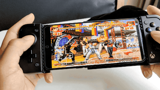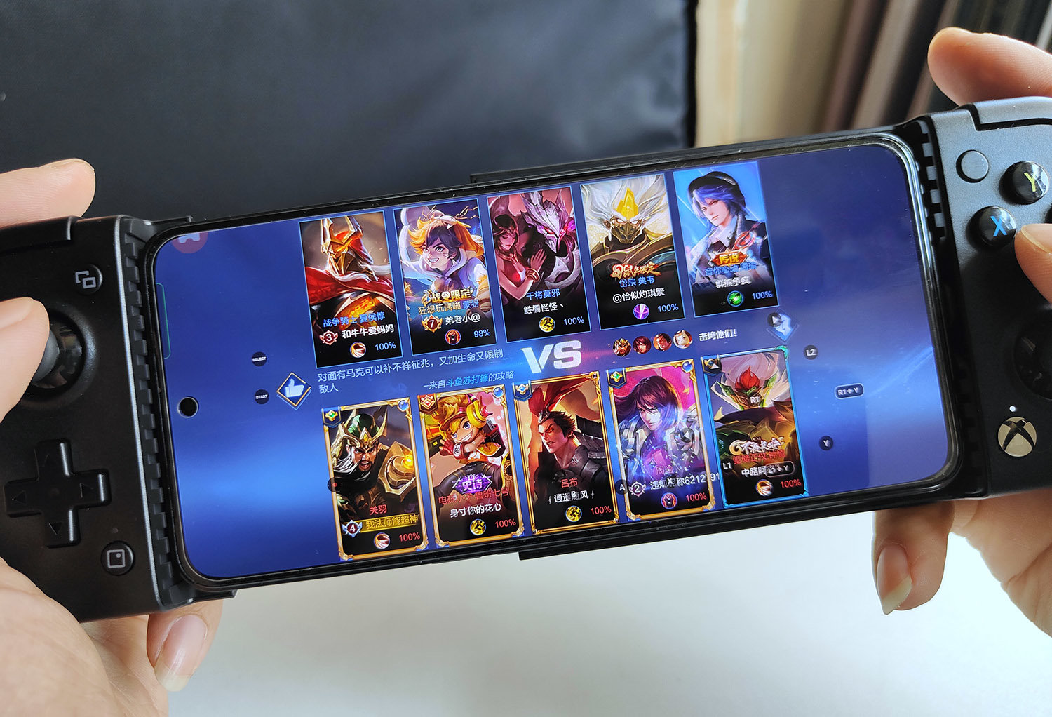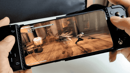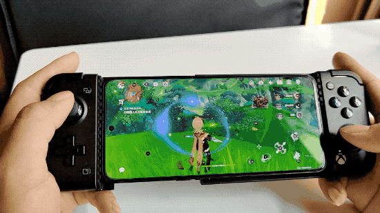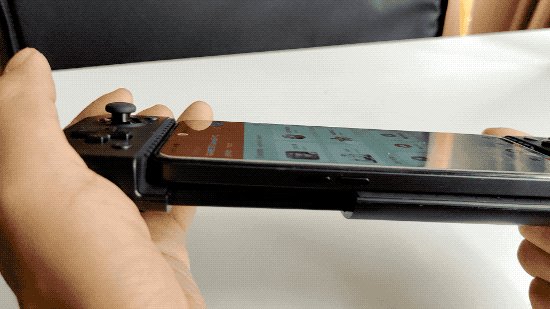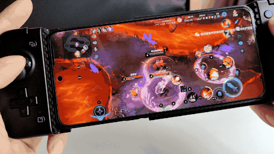 盖世小鸡X2 Pro游戏手柄自身是拉伸设计,弹性很好,可以很好的把手机夹在中间进行游戏。