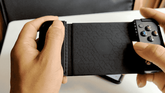 把手机夹进去,看起来是不是很帅,马上手机就变成了大屏幕,而两侧的按键就有那么几分Switch的感觉了对吧!